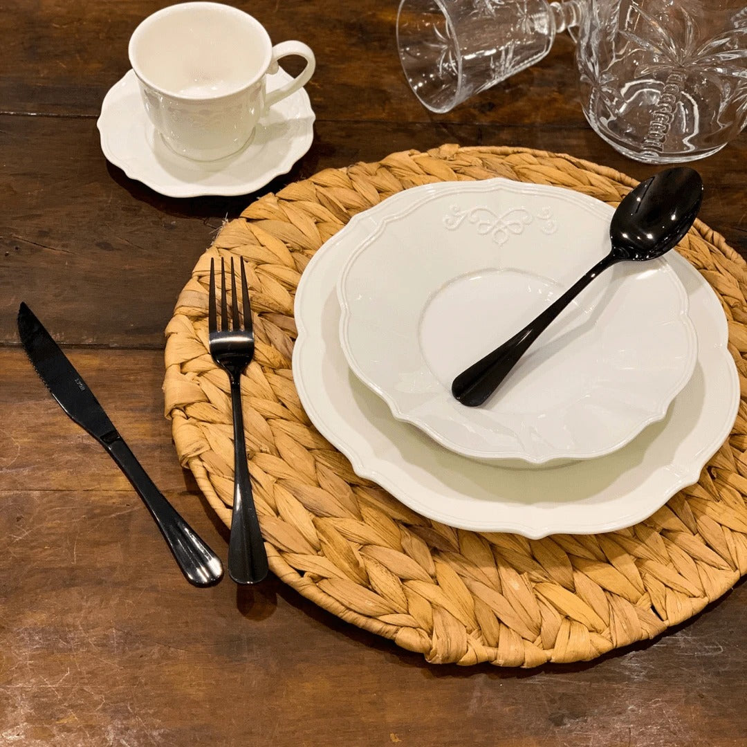 Proporcione mais beleza e praticidade para sua mesa com o Faqueiro 24 Peças de Aço Inox Positano Preto Ônix.