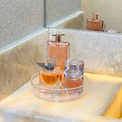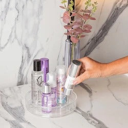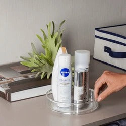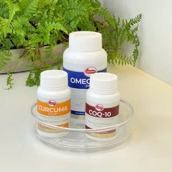 • Feito de plástico resistente e durável, possui um design contemporâneo e uma base giratória que facilita o acesso a todos os seus produtos.