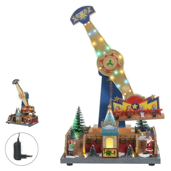 O Enfeite Natalino Parque de Diversão com Luzes Bivolt 40 cm é uma peça central, feita para iluminar e encantar sua decoração de Natal. Este enfeite cativante recria a magia de um parque de diversões